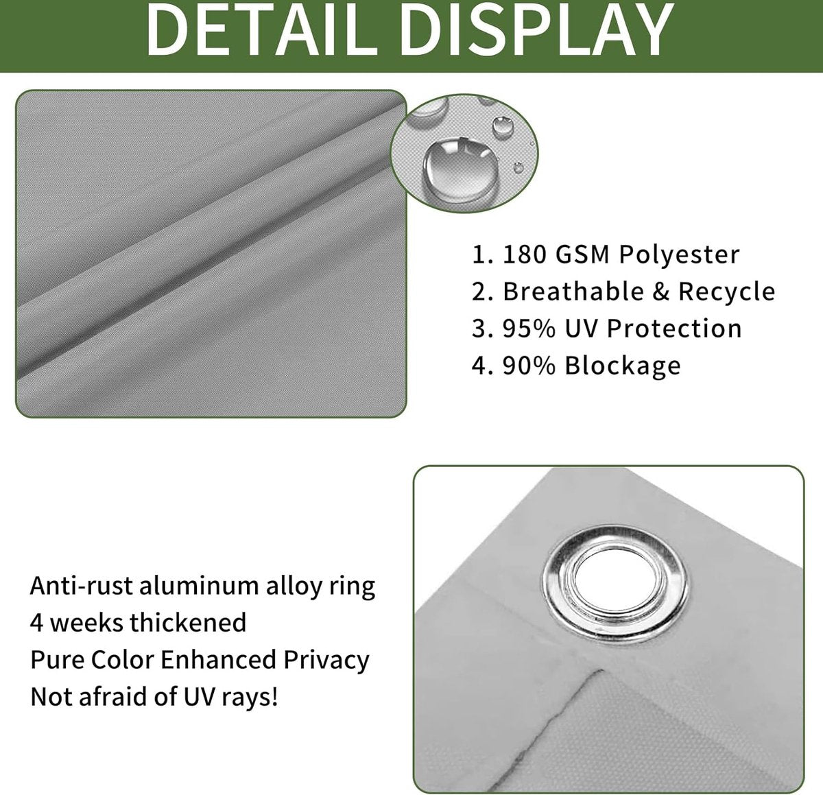 Waterdicht zonnezeil: rechthoekig zonnezeil biedt schaduw en natuurlijke bescherming tegen zon- en uv-stralen. goed als overal flexibel inzetbaar, boven je terras of de speelruimte van de kinderen. Ideaal als schaduw rondom het huis of als inkijkbescherming in de tuin, op het balkon, op de camping of bij het zwembad Zonnezeil van goede kwaliteit: het zonnezeil is gemaakt van 100% hoogwaardig en dicht polyesterweefsel, kan effectief 95% uv-bescherming en 90% schaduwpercentage bereiken. Kan de temperatuur drastisch verlagen en een koele, comfortabele buitenruimte creëren. Dit zonnezeil voor buiten is uv-bestendig, waterdicht, scheurvast en kan worden bereikt. 【Duurzame constructie】: alle randen van het zonnezeil zijn voorzien van robuuste, dubbellaagse versterkte naden om rafelranden en vervormingen te voorkomen. De standaard gatafstand van de luifel bedraagt 50 cm. Stel een installatiehoek van 20-40 graden voor om een maximale spanning te bereiken en ook regen af te voeren. 95% uv-blokkering: blokkeert 95% van de schadelijke uv-stralen (UPF 50+) en bescherm je huid tegen schadelijke stralen. Verkrijgbaar in verschillende kleuren om unieke en verschillende plaatsen te creëren. Je kunt het zonnezeil eenvoudig en snel op de gewenste plaats bevestigen. In de hete zomer vind je een veilige, coole en uv-bestendige omgeving. Breed scala aan toepassingen: de zonneschermen worden gebruikt op balkons, tuinen, terrassen, gazons, zwembaden, parken, pergola's, kinderspeelplaatsen, barbecues of andere terrasruimtes. Het zonnezeil beschermt je tegen uv-bescherming en regen en beschermt je privacy.