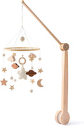 Baby Mobiel Sterren + Luxe 360° Verstelbaar Houten Mobiel Houder - Boxmobiel – Babyshower Cadeau Baby Mobiel – Wieg Mobiel – Kraamcadeau