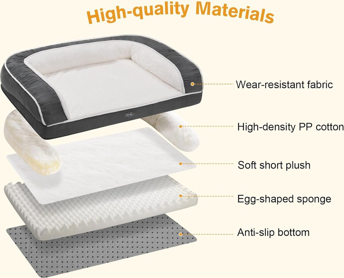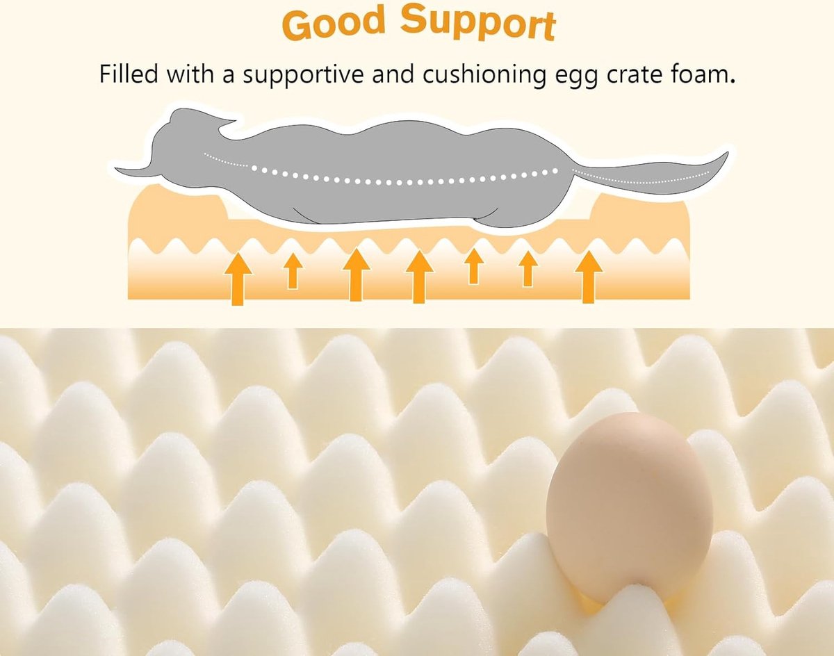 Compact ontwerp: het Pecute slaapbed heeft een klassiek bankontwerp, driezijdig met kussens die de veiligheid bevorderen en ervoor zorgen dat uw huisdier flexibel in verschillende posities kan slapen. De zachte kussens bieden de beste ondersteuning voor nek, rug, heupen en gewrichten, verminderen de druk op de wervelkolom en zorgen voor een betere slaap Hoogwaardige materialen: 1. Suède met hoge dichtheid, slijtvast en vuilafstotend. 2. Het slaapoppervlak is bekleed met ultrazacht nepbont, dat zeer zacht, warm en comfortabel is. 3. Het gehele eivormige orthopedische schuim is net zo ademend als plat schuim. Het kan drukpunten verlichten en de beste comfortabele balans bereiken. 4. De antislipbasis kan het huisdierbed in een geschikte positie bevestigen. Praktisch ontwerp: Neutraal, grijs, aangename kleur, elegant en modieus, past in de meeste woonomgevingen en maakt de "dierentoilet" comfortabel. Let op: Vacuüm verpakken, na opening 48 uur wachten tot volledige verzadiging is bereikt. Of wrijven en deppen om het herstel van de verzadiging te versnellen. Eenvoudig in gebruik: Pecute hondenmand is demontabel en eenvoudig schoon te maken. Zorg voor een schone en hygiënische omgeving voor uw harige vrienden die het risico op huidziekten kan verminderen. Er zit een ritssluiting aan de rand van het bed en een onzichtbare ritssluiting aan de bovenkant. Om het dekbed schoon te maken, moet u alle vullingen verwijderen. Machinewasbaar, bij langdurig gebruik raden wij handwas aan.