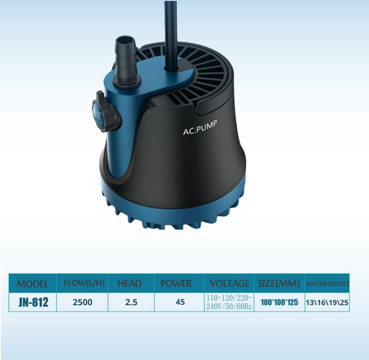 - De pomp kan worden gestart bij een waterniveau van 0,7mm, dat kan zo laag zijn als 1 cm bij het pompen van water.