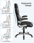 Draaistoel - Bureaustoel - lederlook - beuty in zwart - ergonomische draaistoel - met opklapbare armleuningen - nylon stervoet - draagvermogen 150 kg - zwart
