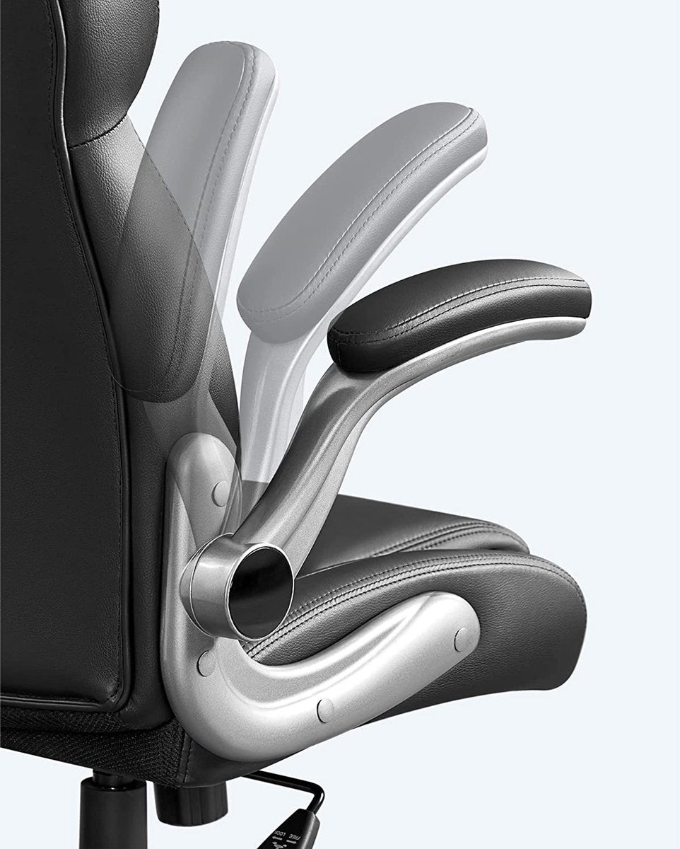 Eindelijk klaar met werken! Klap de armleuningen van deze bureaustoel omhoog en schuif de stoel onder het bureau om ruimte te besparen