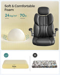 Draaistoel - Bureaustoel - lederlook - beuty in zwart - ergonomische draaistoel - met opklapbare armleuningen - nylon stervoet - draagvermogen 150 kg - zwart