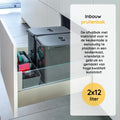 Eleganca Afvalbak 2x12 Liter – Inbouw Prullenbak met inzet-rand - Afvalbak afvalscheiding – Geschikt voor keukenlade met front van 60 cm breed – Antraciet