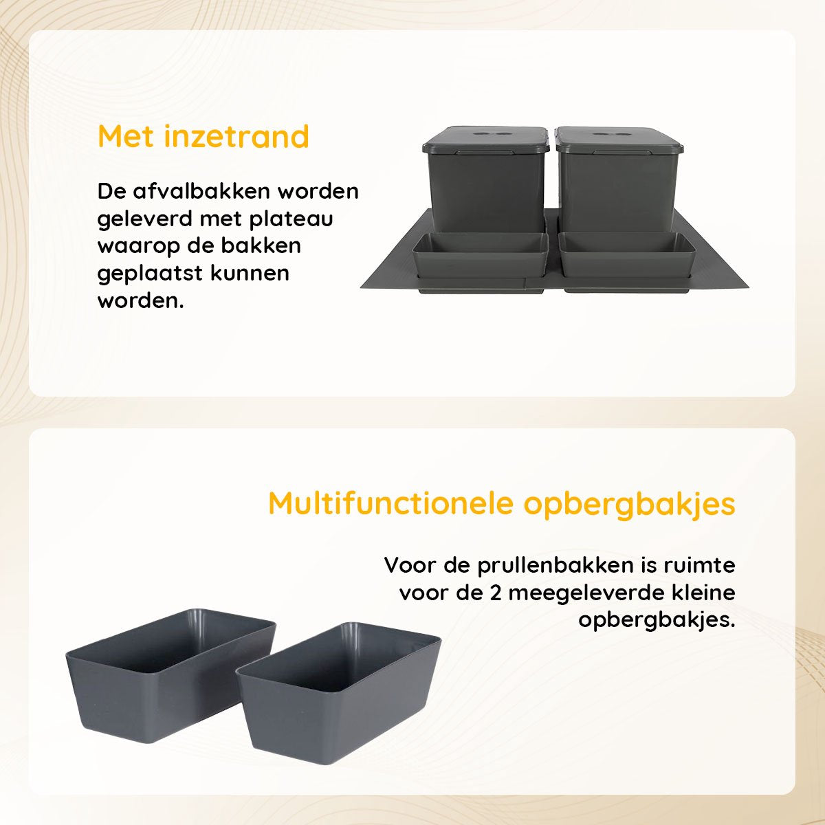 Let op: deze prullenbak past perfect in keukenkastjes met een minimale diepte van 50 cm en een minimale kasthoogte van 25 cm.