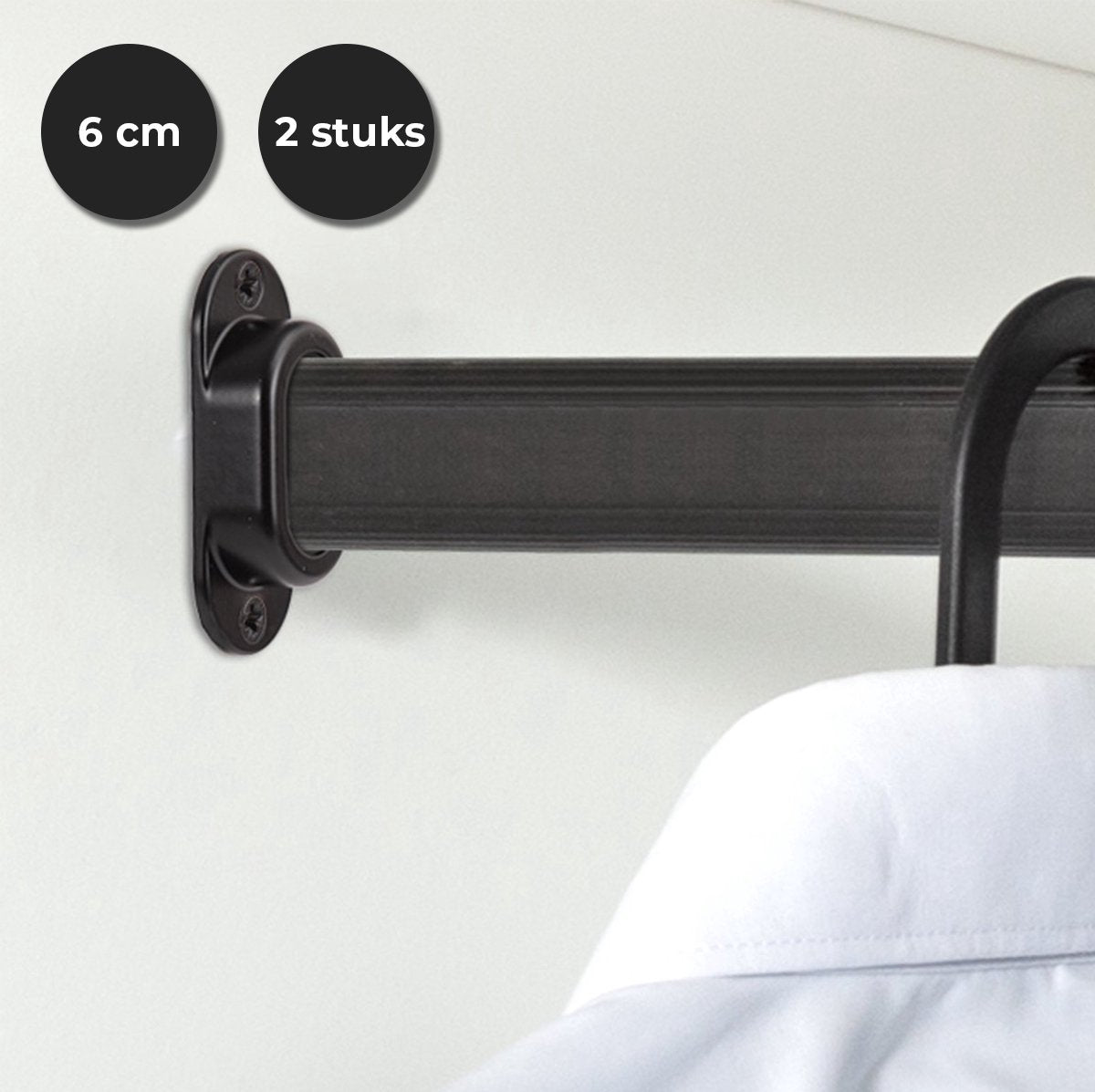Eleganca kastroededrager – Max. afmeting van B1,5xL3,0cm - kastroede houder voor ovale kledingroede – Drager voor kleding roede – Mat Zwart - 2 Stuks