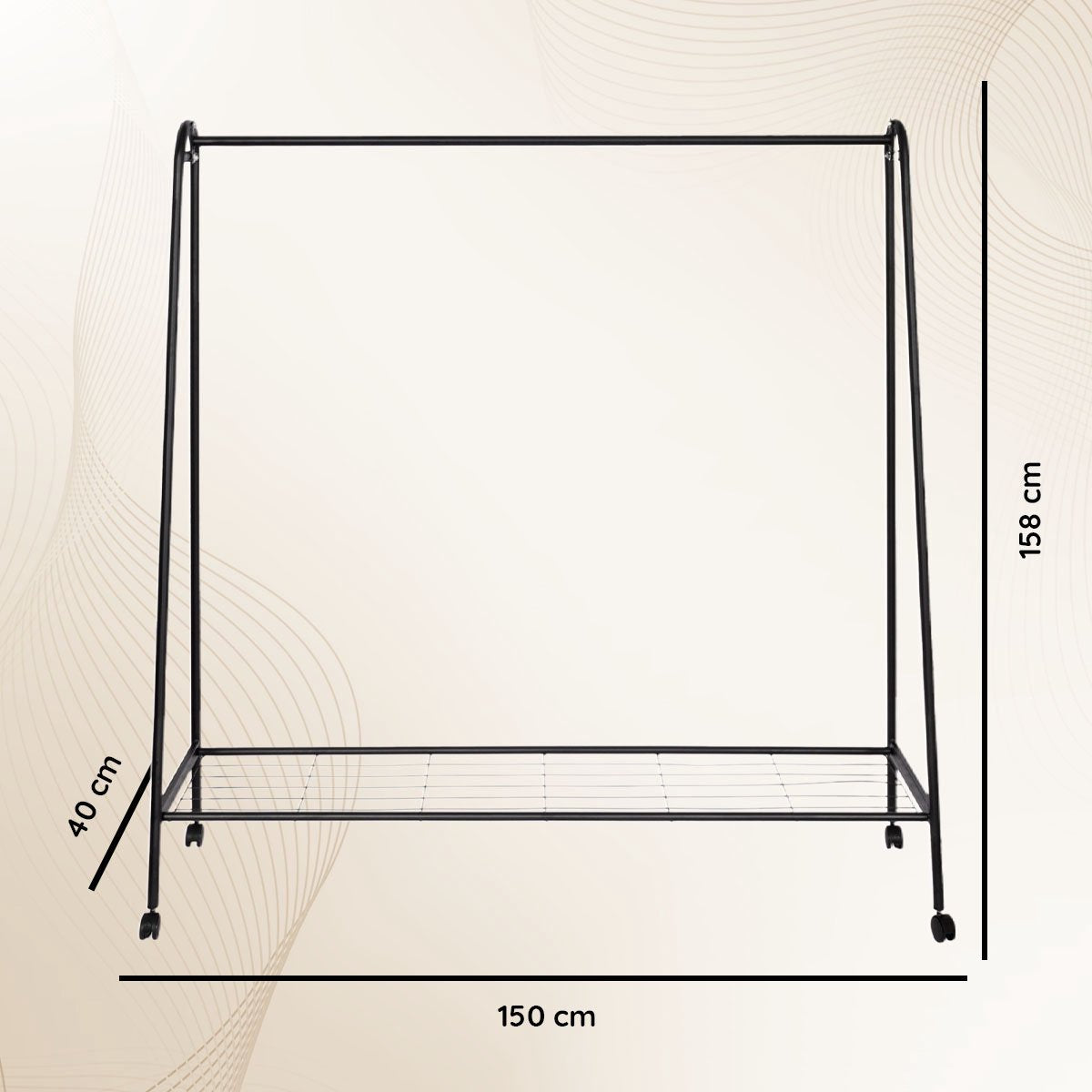 Eleganca Kledingrek op wieltjes - H158 x B150 x D40 cm - Kledingstang - Dressboy - Kledingrek metaal - Garderoberek - Stevig - Zwart