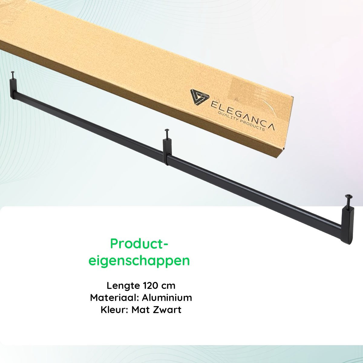 Eleganca kledingstang – Extra zware kleding roede – 120 cm – Montage onder plank – Inclusief 2 extra stevige aluminium eindhouders & 1 midden houder – Geschikt voor zware kleding, buigt niet door – Metaal - Mat Zwart