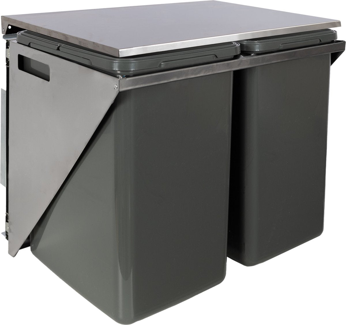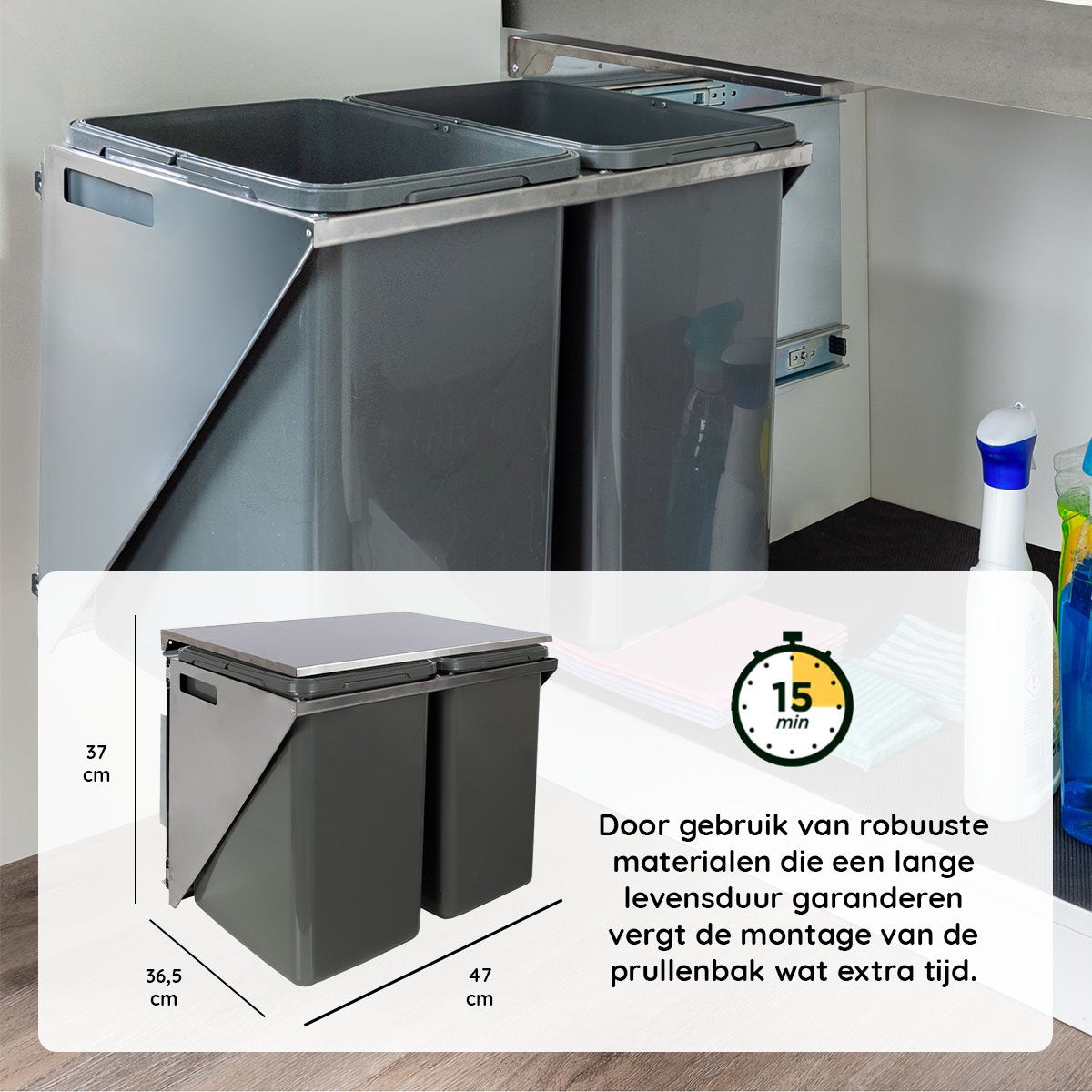 Eleganca Uittrekbare Afvalbak 2 X 20 Liter – Inbouw Prullenbak met 2 emmers - Afvalscheiding Wandmontage - RVS Frame - Professioneel - Geschikt vanaf Deurbreedte 40 cm – Antraciet