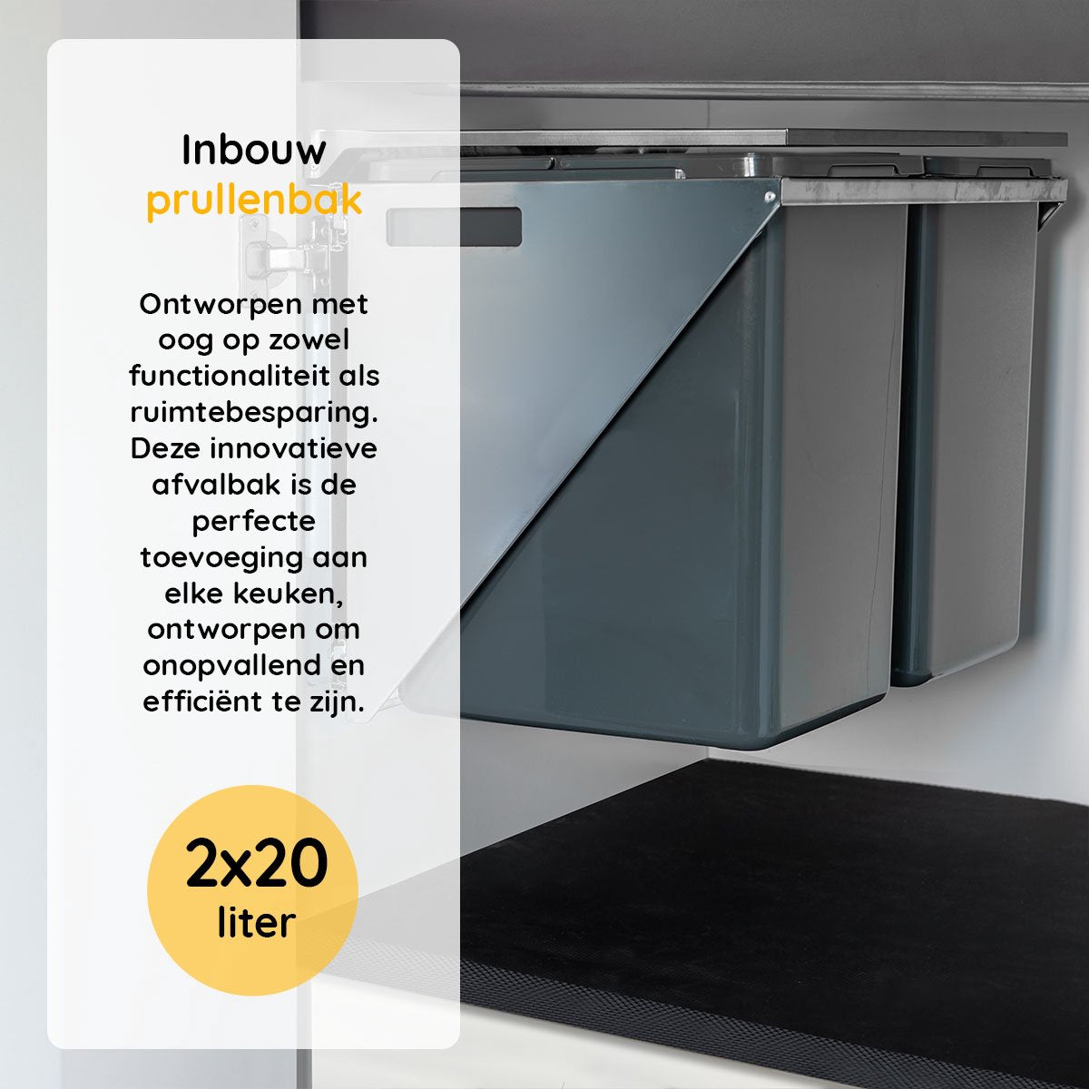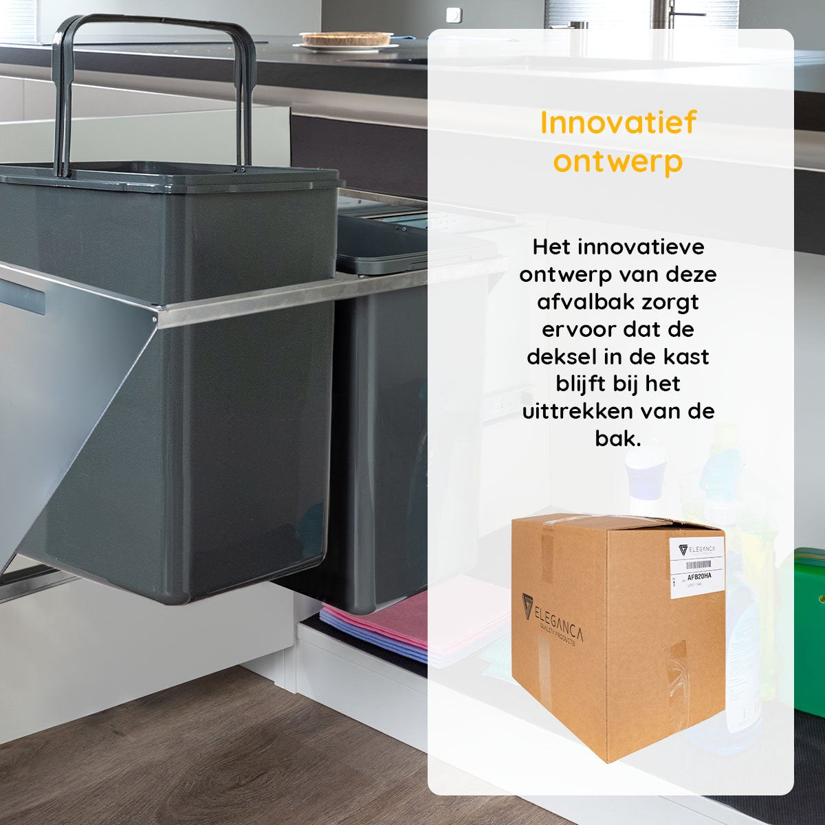 De Eleganca uittrekbare afvalbak 2 x 20 liter is een slimme en ruimtebesparende oplossing voor jouw keuken!