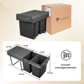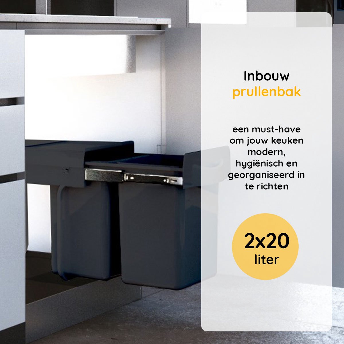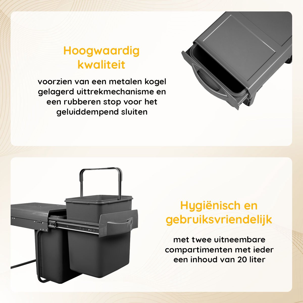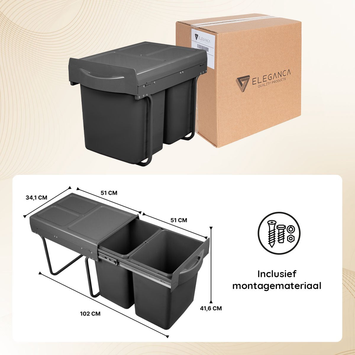 Eleganca Uittrekbare Afvalbak 2x20 Liter – Inbouw Prullenbak met 2 emmers - Afvalbak Afvalscheiding – Geschikt vanaf deurbreedte 40 cm, inbouwdiepte 52 cm & hoogte 42 cm – Antraciet