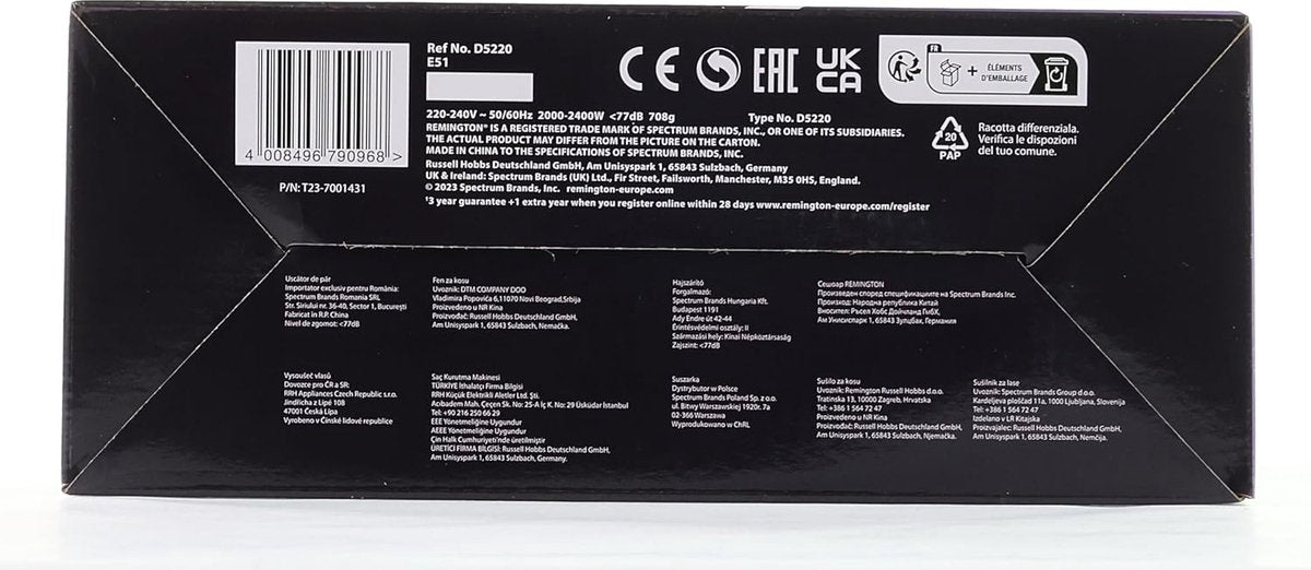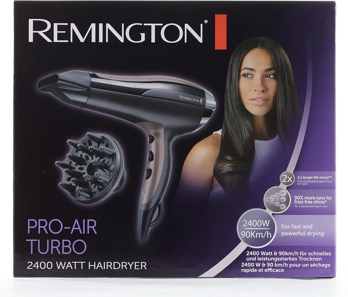 Pro Air Turbo Haardroger - 2400W - Zilver - Ionentechnologie De Pro Air Turbo Haardroger is ontworpen voor kracht, snelheid, en een professionele finish. Met geavanceerde ionentechnologie en een krachtige 2400W motor biedt deze föhn een snelle en effectieve stylingervaring, terwijl hij kroes en pluis tegengaat. Belangrijkste Kenmerken: Krachtige 2400W motor: Voor een snelle droogtijd met een indrukwekkende blaaskracht van 90 km/u, ideaal voor dik of lang haar. Ionengenerator Technologie: Vermindert kroes met 90% meer ionen dan standaard haardrogers, waardoor het haar glad, glanzend en pluisvrij blijft. Keramische technologie: Helpt de warmte gelijkmatig te verdelen voor zachtere styling en extra bescherming van het haar tegen schade. Veelzijdige accessoires: Smalle blaasmond voor gerichte styling en precieze resultaten. Diffuser voor extra volume en het definiëren van krullen, perfect voor pluizig of krullend haar. Instelbare instellingen: 3 warmtestanden en 2 snelheden: Voor aanpasbare droogervaringen afhankelijk van je haartype en stylingvoorkeur. Turboboost-functie: Voor nog snellere droging door extra krachtige blaaskracht. Cool shot-knop: Fixeer je stijl met de koele luchtstroom die ervoor zorgt dat je haar de hele dag in model blijft. Specificaties: Vermogen: 2400W Blaaskracht: 90 km/u Warmtestanden: 3 Snelheden: 2 Kleur: Zilver Ionengenerator technologie: Ja, voor glanzende en kroesvrije resultaten Diffuser en blaasmond inbegrepen: Ja Cool shot-knop: Ja Keramische technologie: Ja De Pro Air Turbo Haardroger biedt krachtige prestaties en veelzijdige functies voor het creëren van een professioneel ogende, glanzende stijl zonder kroes of pluis. Perfect voor dagelijks gebruik en verschillende haartypes.