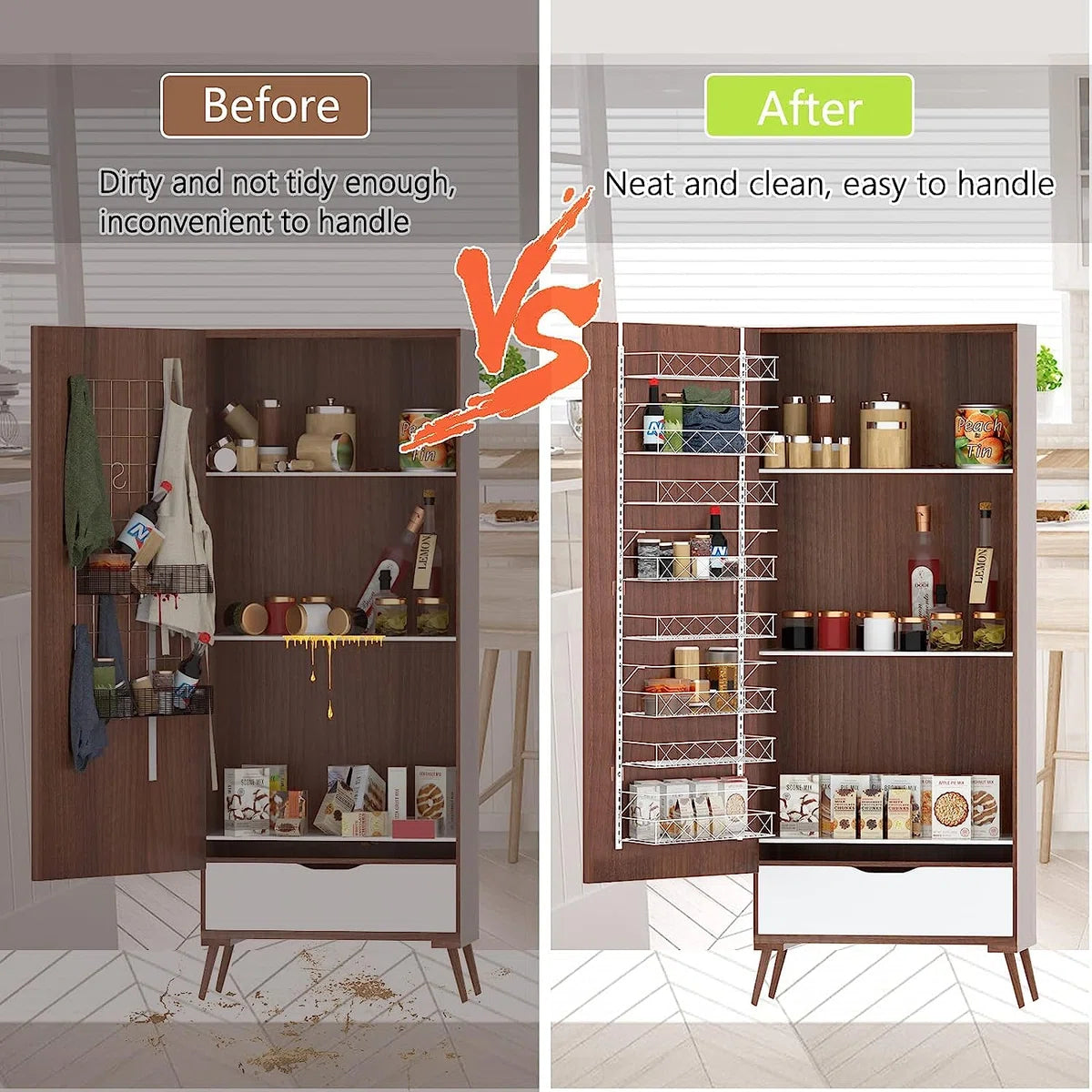 Deze hangende organizer is een ideale oplossing voor het creëren van extra opbergruimte zonder vloerruimte in beslag te nemen. Het verstelbare en afneembare ontwerp van de mesh-deurorganizer biedt veelzijdigheid en flexibiliteit. Hang hem direct achter een deur of kastdeur en pas de afstand van elke mand eenvoudig aan naar jouw behoeften. De manden kunnen toegevoegd of verwijderd worden, zodat je gemakkelijk verschillende voorwerpen kunt organiseren, van kruidenflessen tot badkameraccessoires.