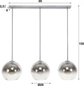 Hanglamp Bubble shaded | 95 cm | 3 lichts | rookglas | eettafel lamp | eetkamer / woonkamer | glazen bollen | landelijk / modern