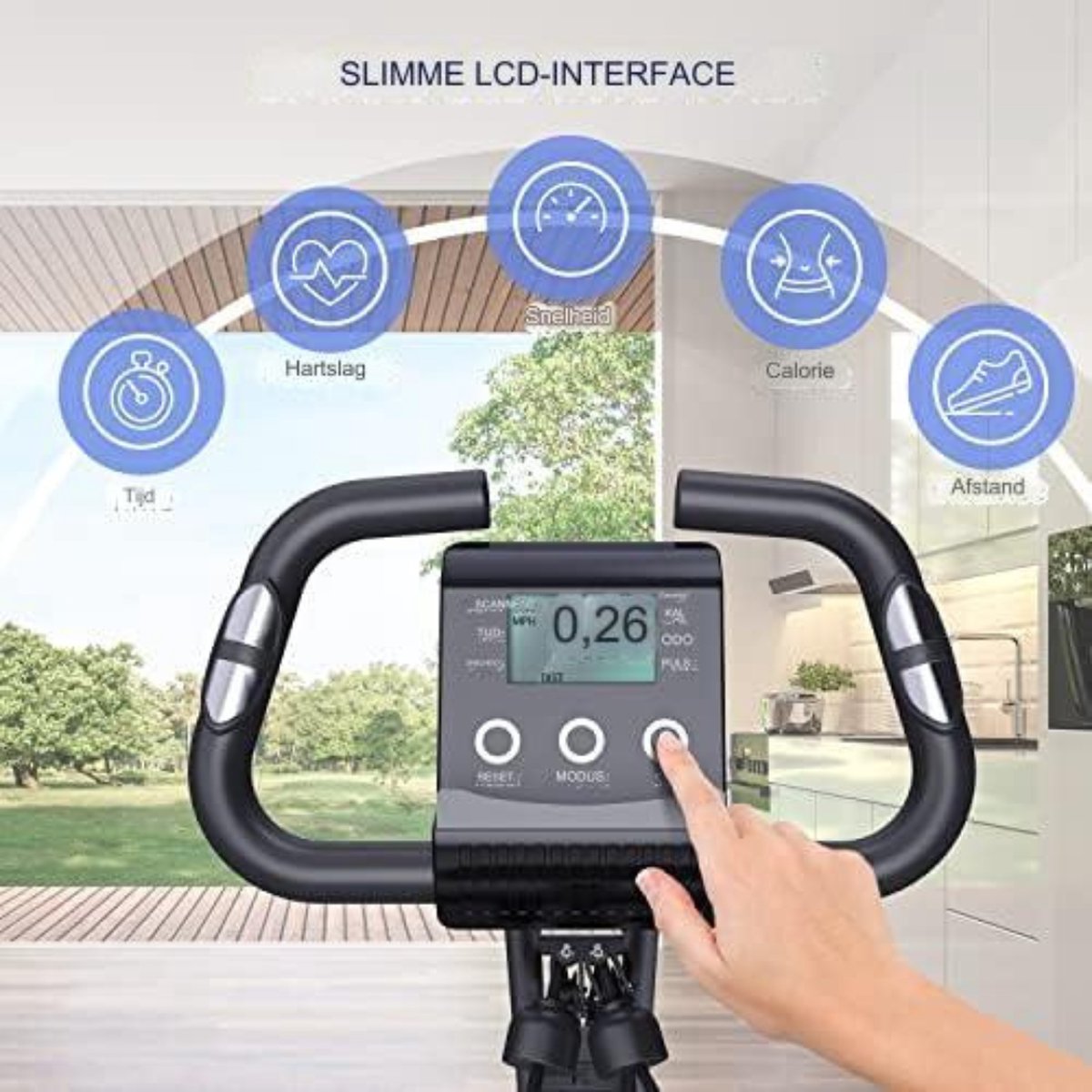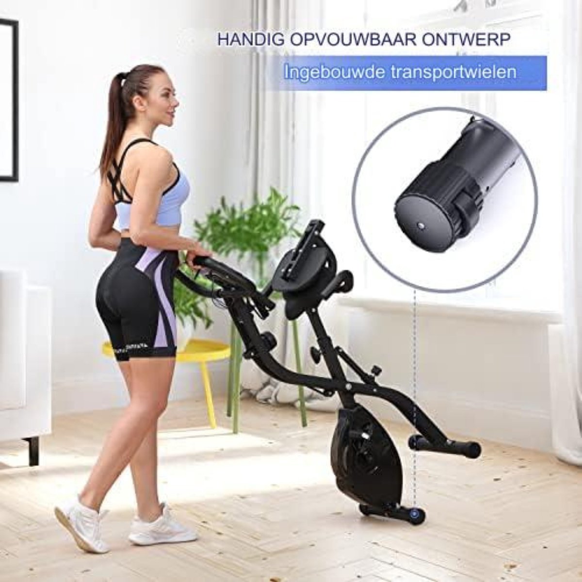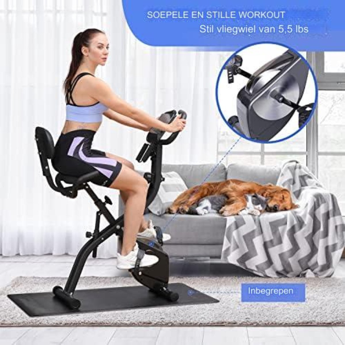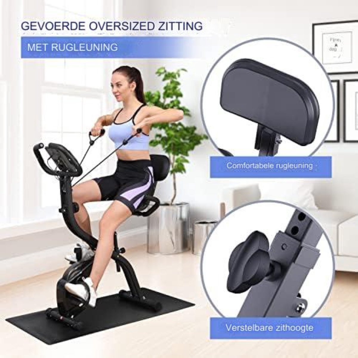 - **16 Magnetische Weerstandsniveaus:** De 16 magnetische weerstandsniveaus van de hometrainer zijn het belangrijkste kenmerk. Deze weerstandsniveaus stellen u in staat uw trainingsplan aan te passen, van opwarmen tot zware training. Deze opvouwbare hometrainer is ideaal voor zowel beginners als professionals. Bereid u voor op fantastische trainingsresultaten. - **Bonus PVC Mat en Geïntegreerde Weerstandsband:** Voor senioren staat veiligheid voorop. Daarom wordt een PVC mat meegeleverd die uw trainingsapparatuur stabiliseert en uw bewegingen soepel en zacht maakt, terwijl uw vloer wordt beschermd. De ingebouwde weerstandsband stelt u in staat om intensiever te trainen met minimale inspanning. De weerstandsband helpt ook om uw armen, schouders en taille te ontspannen voor een gezonde workout. - **Ergonomische en Comfortabele Fietservaring:** Fietsen hoeft geen pijnlijke ervaring te zijn. De opvouwbare ergometer van heeft een achter- en ergonomisch zadel, gemaakt van een hoogwaardige spons voor extra comfort. Met 7 verstelbare hoogtes en een draagvermogen van 300 pond kunt u uw training verbeteren zonder u zorgen te maken over defecten aan de machine! - **Lichtgewicht Sport Tracking:** Wilt u nauwkeurige gegevens over uw beweging bijhouden? Dan is de 3-in-1 hometrainer precies wat u nodig heeft, omdat deze uw snelheid, tijd, afstand, verbrande calorieën en hartslag tijdens uw trainingssessies weergeeft. Maak u klaar om de controle over uw training over te nemen. - **Persoonlijk en Entertainment:** Het multifunctionele ontwerp van deze ergometer hometrainer stelt u in staat om eenvoudig uw armen, schouders, taille en dijen te versterken. De ingebouwde tablet / mobiele telefoonhouder stelt u in staat om videoclips te bekijken of een vergadering bij te wonen tijdens het trainen. Vergeet niet de fiets op te vouwen en op te bergen wanneer deze niet in gebruik is.