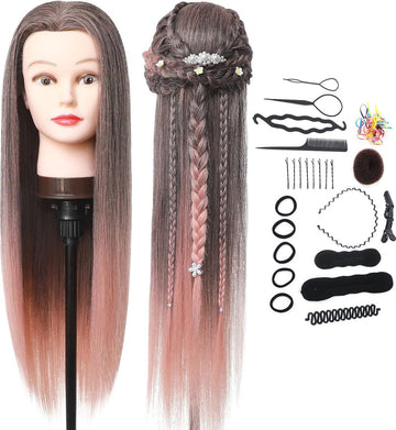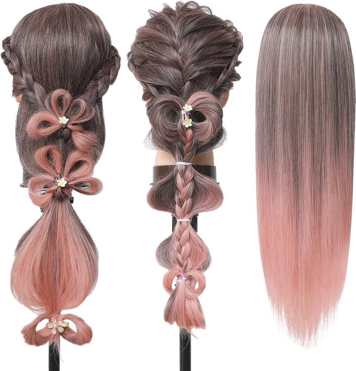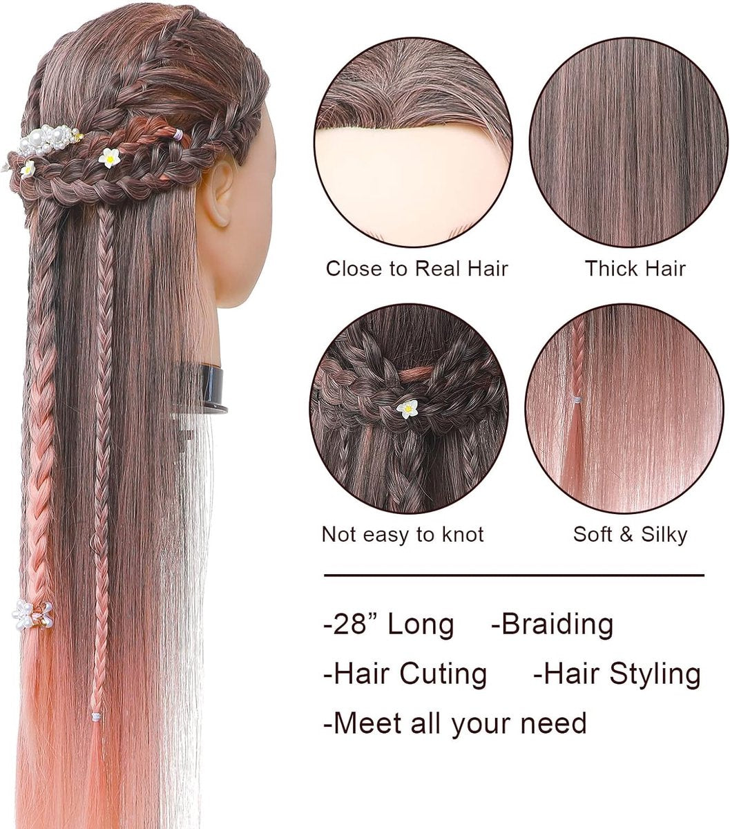 Kappershoofd 26-28 Inch 100% Synthetische Vezel Haar Training Hoofd Voor Kappers Meisjes Stylisten Zachte Mannequin Poppen Hoofd Voor Het Oefenen Van Kapsels
