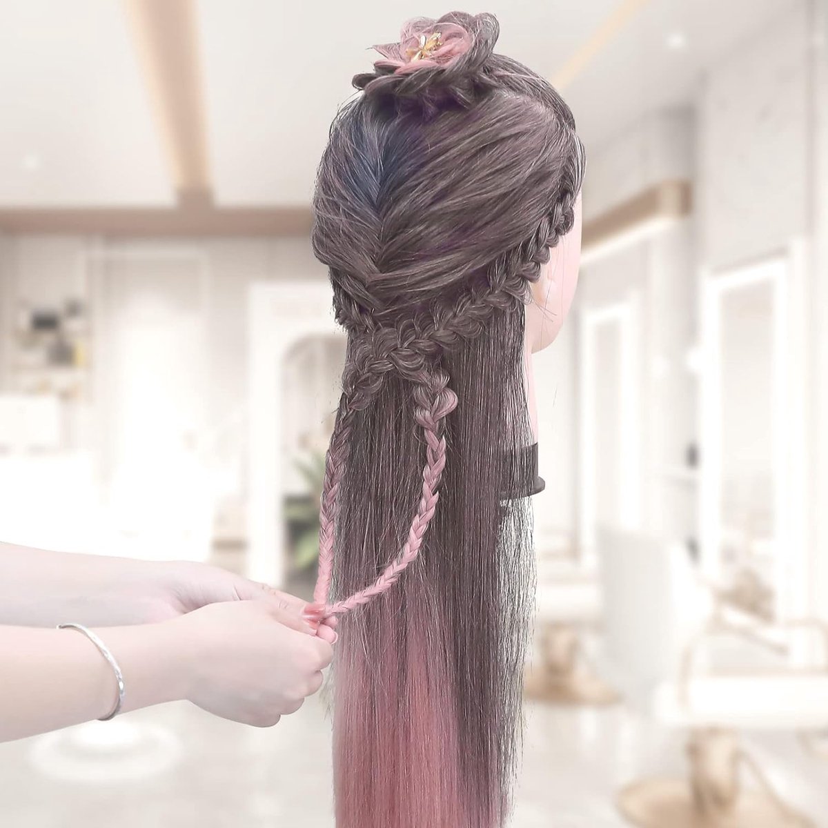 Dit kapper hoofd is gemaakt van 100% synthetisch vezelhaar op hoge temperatuur, wat zorgt voor een zachte, gladde en zijdezachte textuur. Hierdoor is het haar gemakkelijk te stylen en voelt het natuurlijk aan. Met een lengte van 26-28 inch biedt dit haarhoofd veel ruimte om creatieve kapsels te creëren.