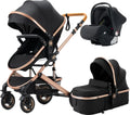 kinderwagen 3 in 1 - baby wagen - baby stroller - baby buggy combi -opvouwbaar - Incl. draagbare mand + autostoel - omkeerbare hoge zitplaats - verstelbare zonnescherm luifel - t/m 3 jaar - Kleur Zwart - schokabsorberende dempers