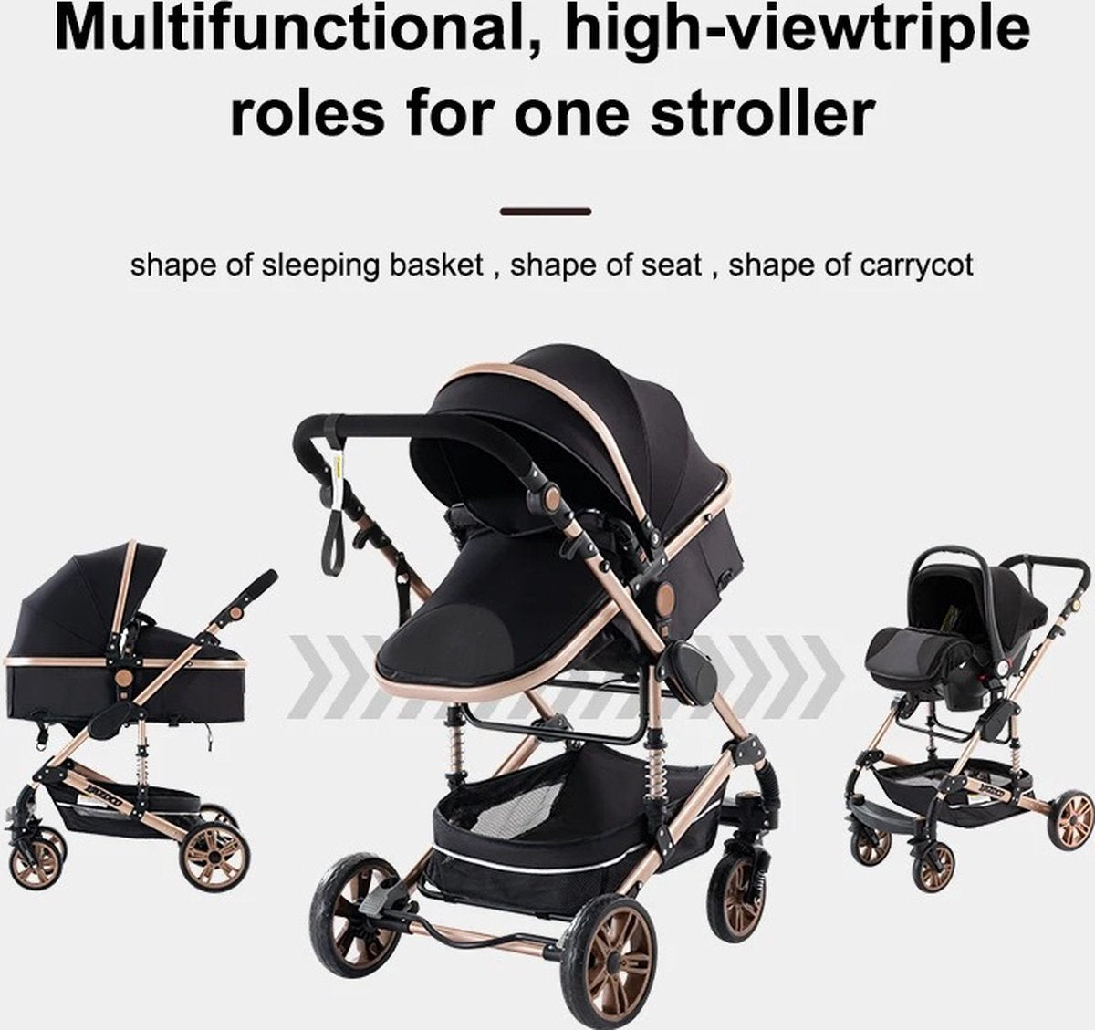 Luxe 3 in 1 Kinderwagen Zwart met Goud is de perfecte combinatie van praktische opties en optimale comfort!