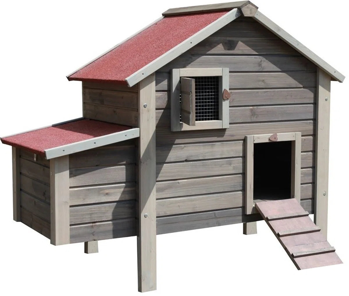Kippenhok Anna is ontworpen met een raam aan de voorkant om verse lucht naar binnen te laten. Het heeft 1 dubbel Legnest, met een dak dat geopend kan worden voor het rapen van de eieren. De deur kan van buitenaf afgesloten worden, door een draaiende beweging van de opstapladder.