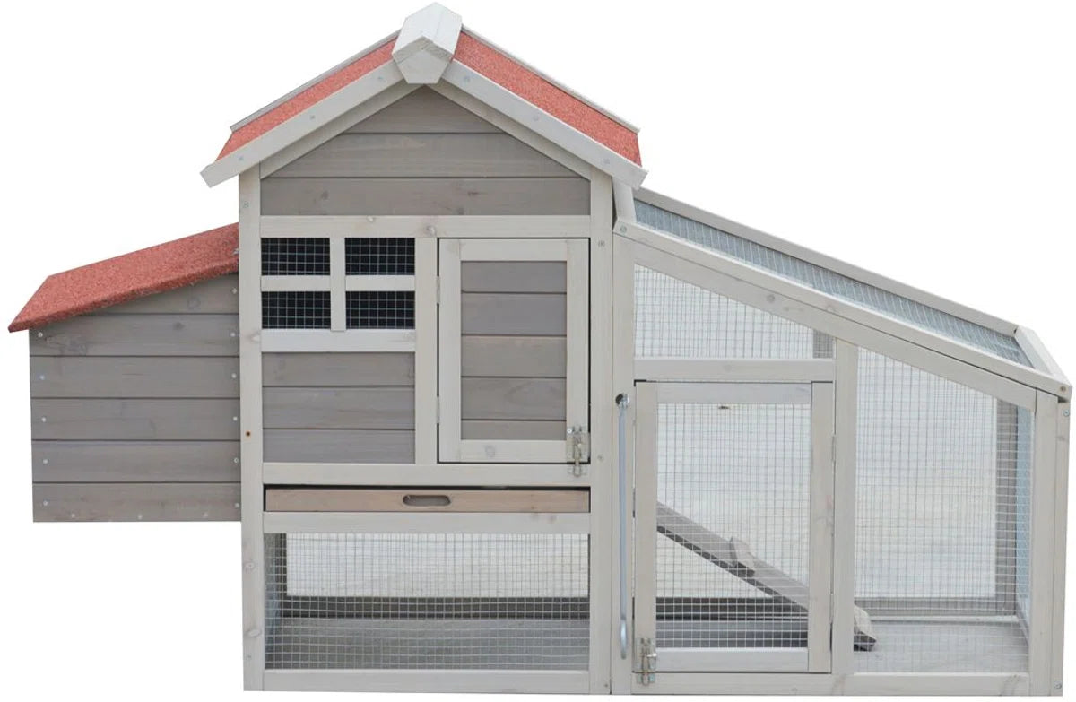 Het overdekte nachthok is voorzien van een ruime toegangsdeur en een uitneembare houten met zinken schuiflade voor optimale hygiëne.