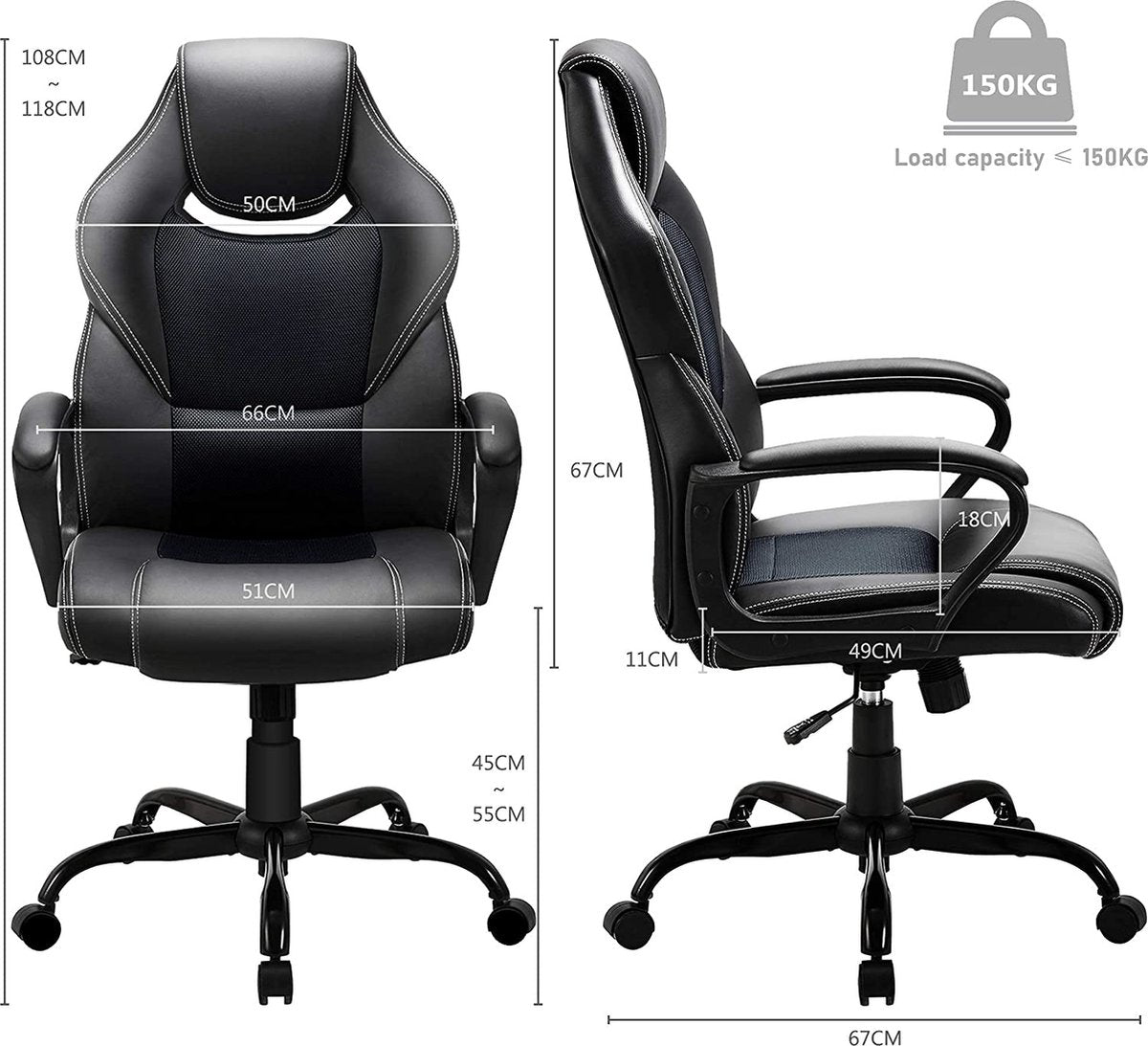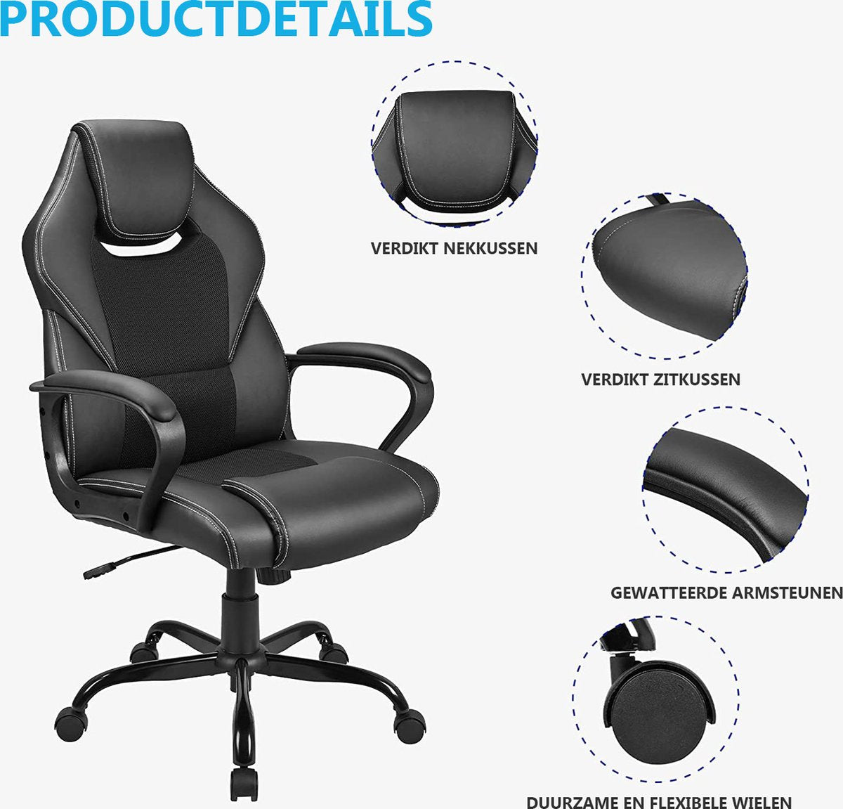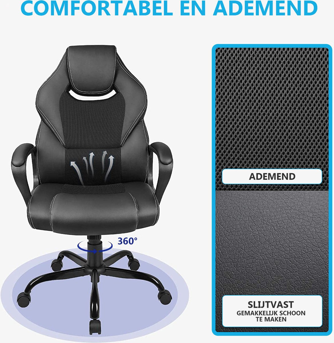 ✔ Kruisvoet met 5 zwenkwielen die zijn voorzien van een jas van PU - zeer bestand tegen slijtage en helpen de vloer beschermen tegen krassen. Geschikt voor gebruik op bijna alle soorten vloeren (hout, tegels, pvc en vloerbedekking)