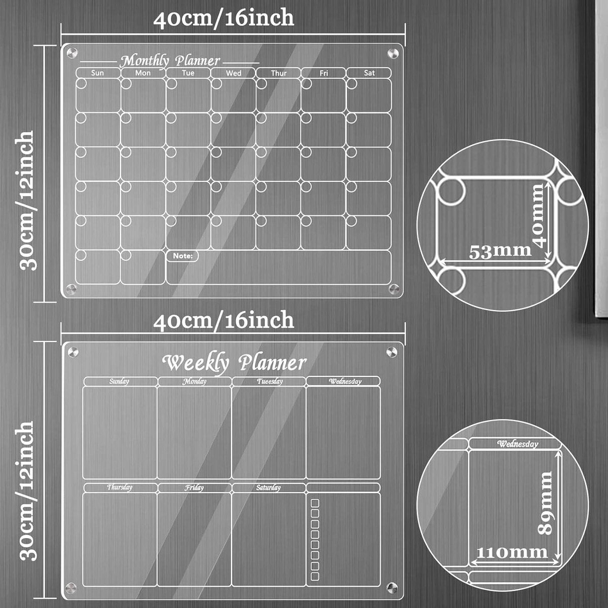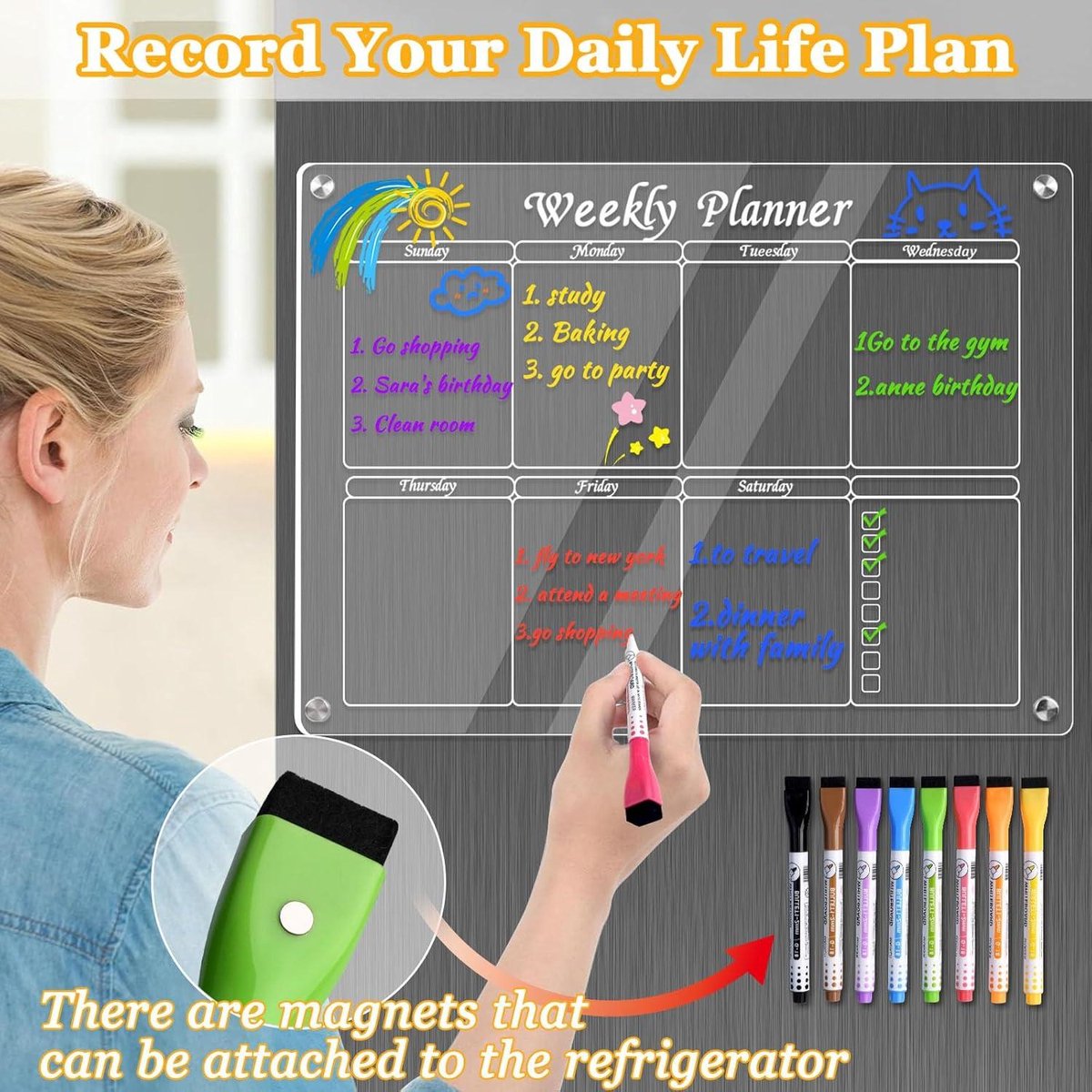 Magnetische weekplanner en maandplanner voor koelkast - afwasbare week- en maandplanner van glas en acryl voor het gezin acrylic calendar