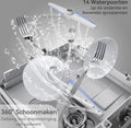 Dieptereiniging met 360-graden Sproeiarmen: Dankzij twee krachtige sproeiarmen wordt je vaat grondig en zonder resten gereinigd. Of het nu gaat om vet servies of delicate glazen, de mini-vaatwasser zorgt voor een schitterende afwerking.