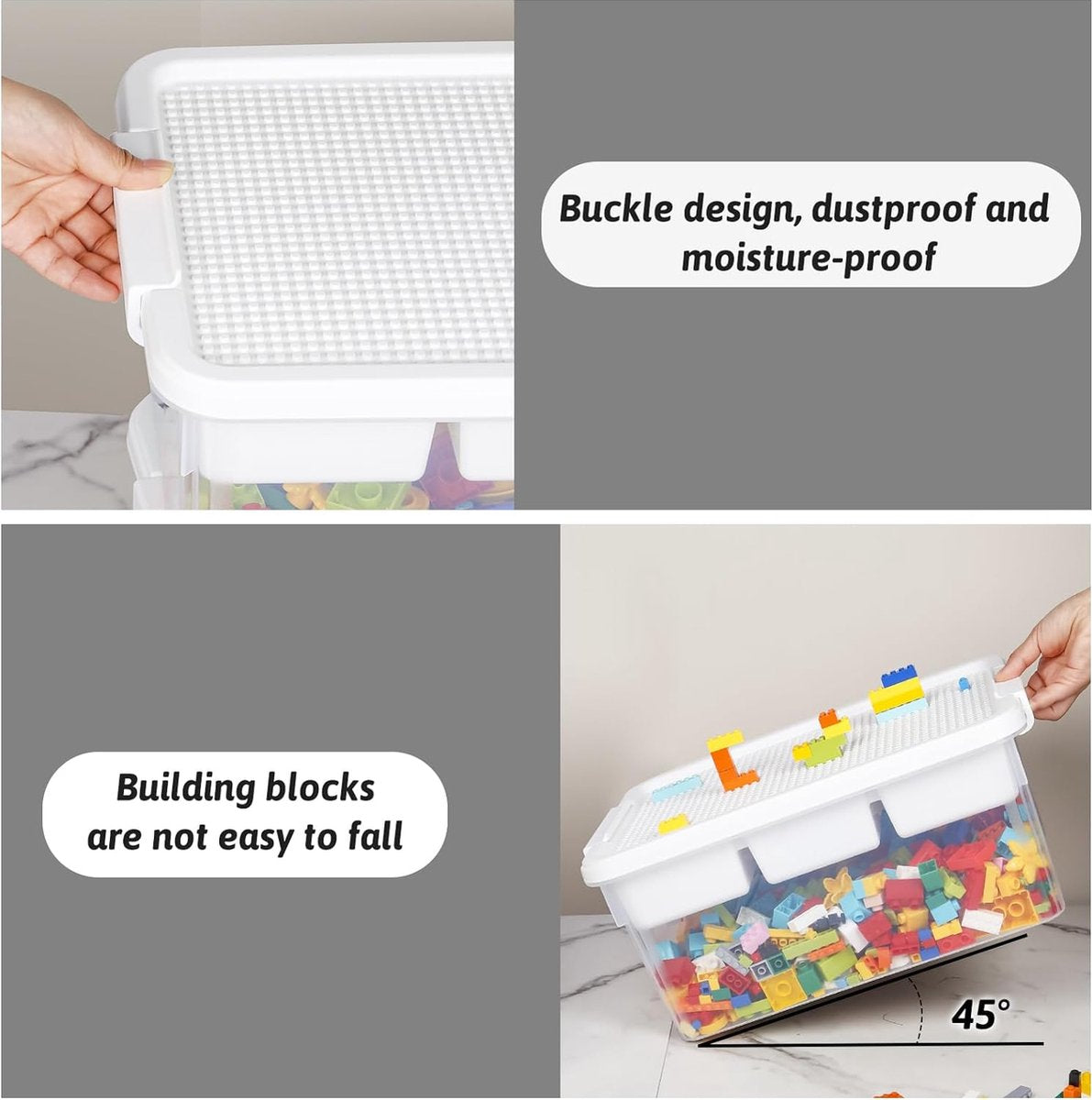 Opbergdoos voor bouwstenen, opbergvakken, 3 stuks, stapelbare dozen, speelgoedopberger met deksel en bouwplaat, stapeldozen, kunststof sorteerdozen, organizerdoos voor kleine onderdelen, kinderspeelgoeddoos