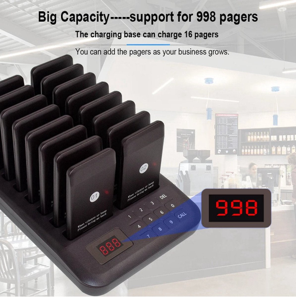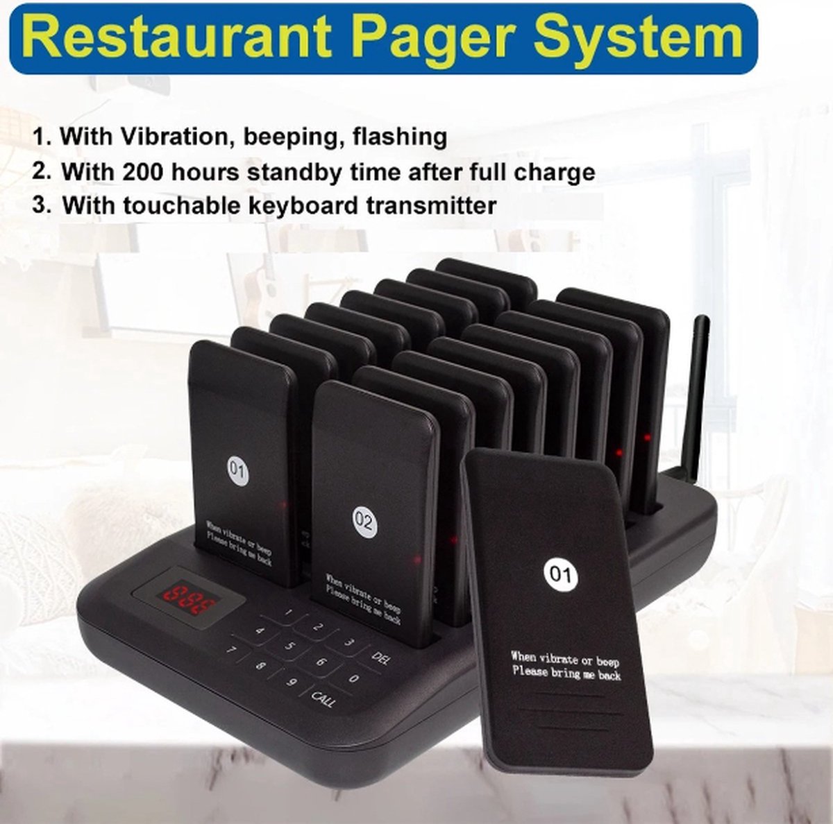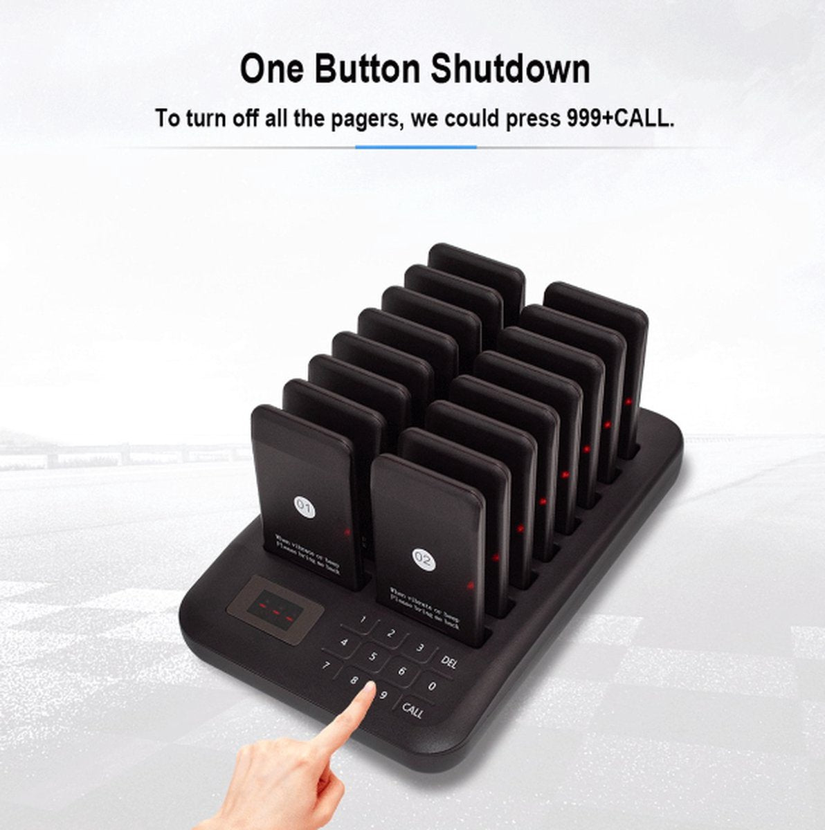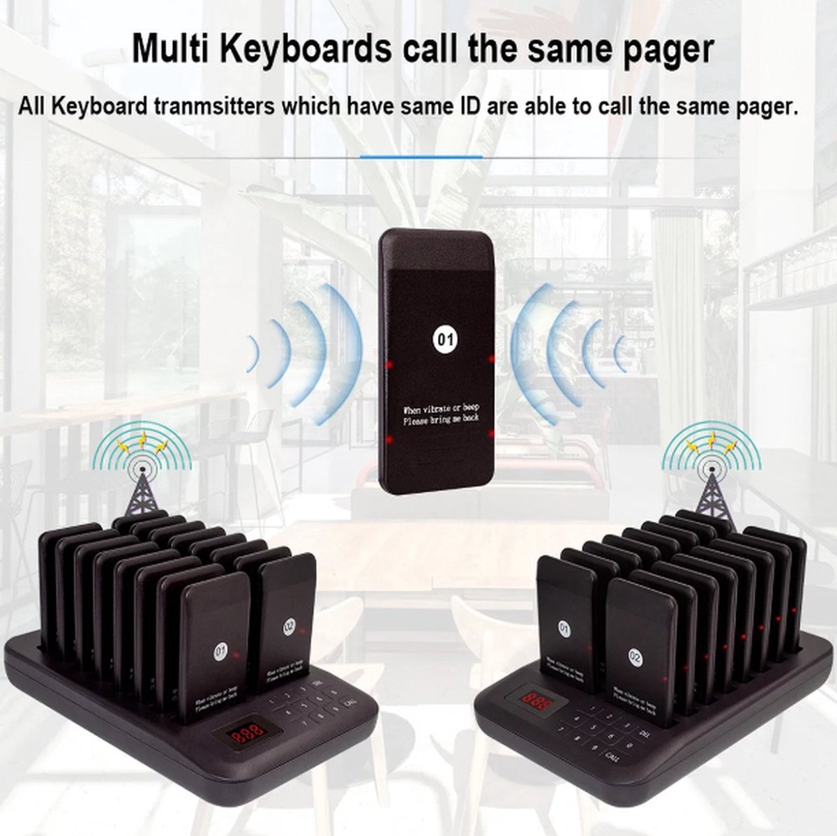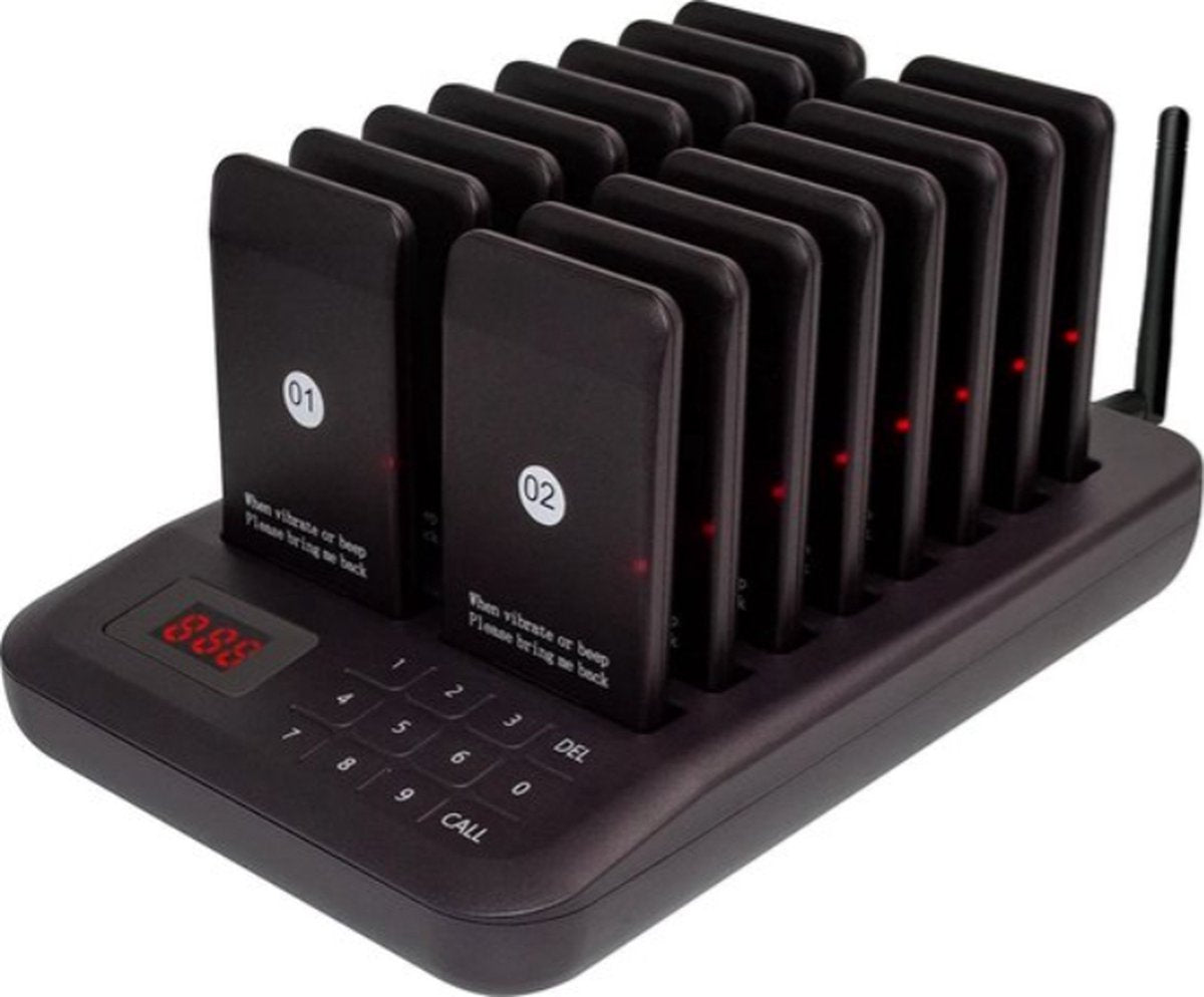 Met 16 pagers en 1 toetsenbord zender, kunnen de gasten eenvoudig worden opgeroepen wanneer hun bestelling klaar is.