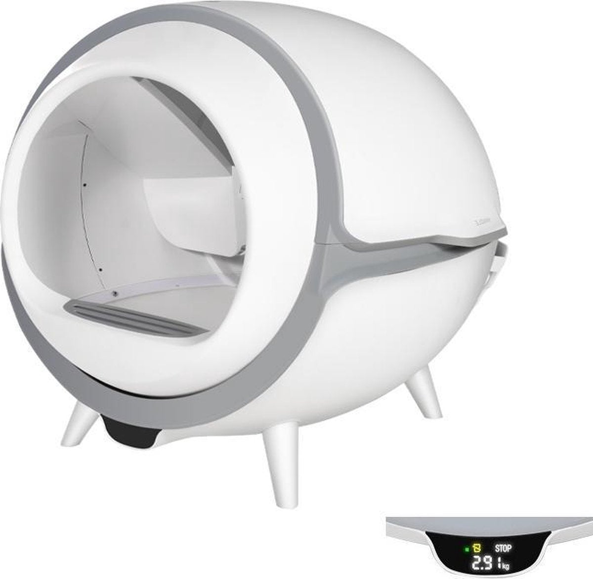Een ingebouwde led-weegschaal helpt u om het gewicht van uw kat goed in de gaten te houden. Veranderingen in het gewicht van een kat zijn een belangrijke indicator voor de gezondheid. Elke keer dat de kat naar binnen gaat, geeft de intelligente weegschaal een nauwkeurig gewicht aan.