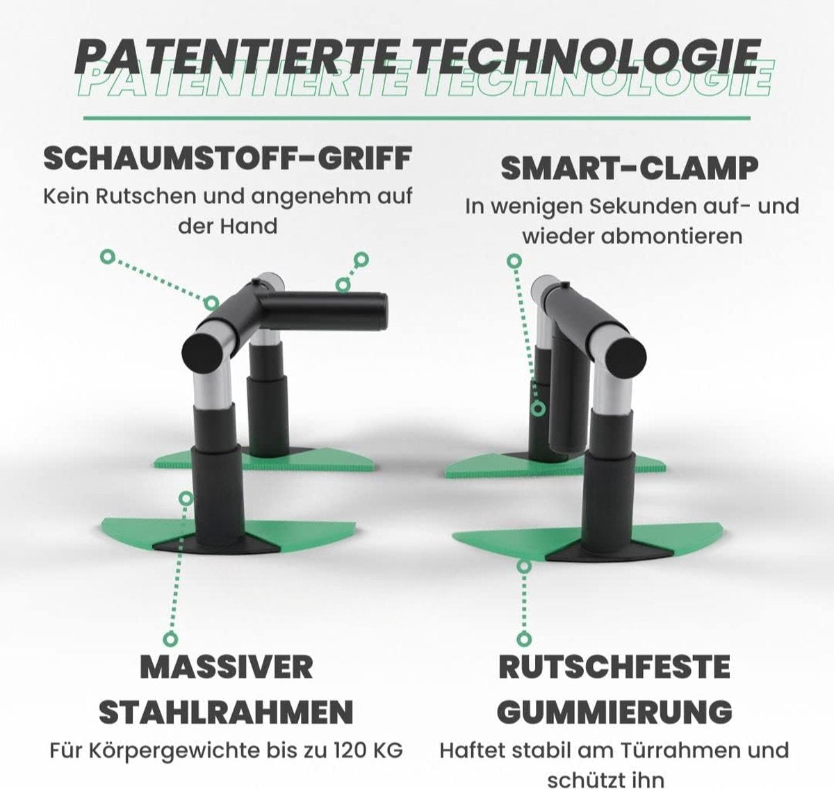 - Innovatief Smart Clamp-mechanisme maakt snelle bevestiging aan het deurkozijn mogelijk.