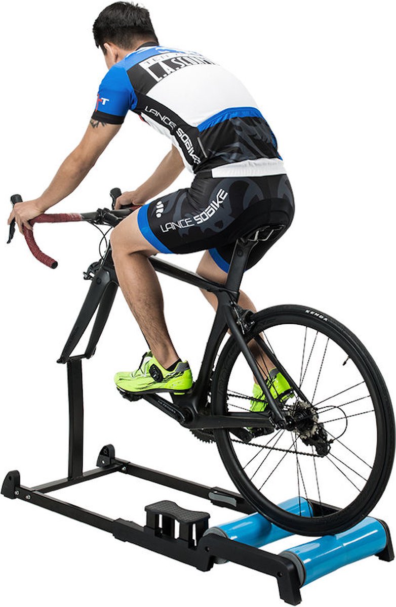De rollenbaan fietstrainer is geschikt voor fietsen racefietsen, koersfietsen en mountainbike's. Het voorwiel is in een mum van tijd gefixeerd.