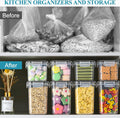 Storage containers with lid: this cornflakes storage box contains storage jars with lids 25 pieces (0.8 L x 10, 1.4 L x 5, 2 L x 5, 2.8 L x 5). In addition, there are 24 reusable bonus labels that allow you to label the stored food, as well as a pen and 4 measuring spoons. An instruction manual in several languages is also included. Kitchen storage box: our storage jars are available in 4 different sizes and can be stacked in the kitchen to save space. The airtight storage jars with lids are suitable for spaghetti, rice, flour, milk, various types of breakfast, coffee, coffee beans, cornflakes, loose pet food and much more. Airtight, insect and leak-proof: our storage containers are equipped with food-safe sealing rings. Storage containers can ensure the freshness of the stored food and are not easy to spoil. In addition, the kitchen storage box with lid is equipped with all-round secure fasteners that effectively prevent the penetration of cockroaches, moths and other insects. Transparent opal colour, robust and durable: our airtight storage containers with lids are made of clear, cream-coloured, food-safe plastic, which is BPA-free and approved by the FDA as free from harmful substances. The airtight storage box is robust, temperature-resistant from -10°C to 100°C and dishwasher safe.