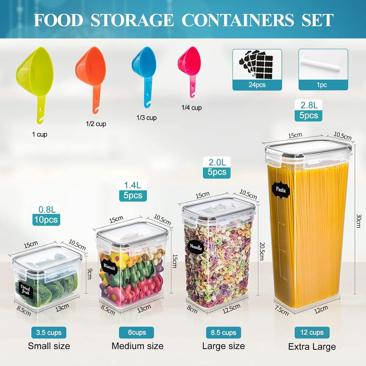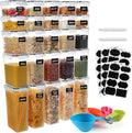 Storage Jars with Lid, Airtight, Set of 25, BPA-Free, Total Capacity 39 L, Storage Box, Kitchen, Moth-Proof Kitchen Organiser, Cornflakes, Cereal, Flour Storage, Storage Container with Labels