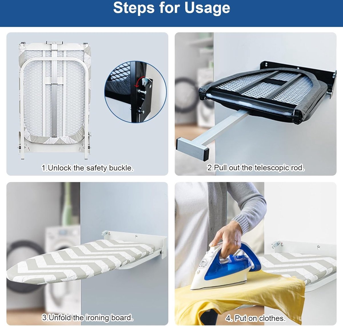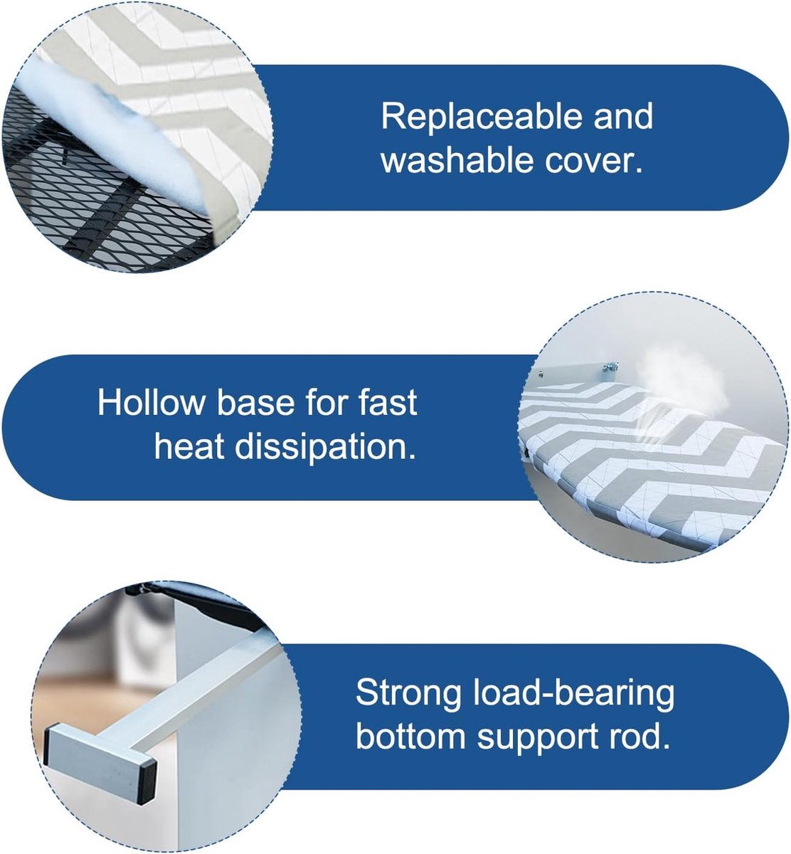 ► ► 【Opvouwbare wandgemonteerde ruimtebesparende strijkplank】 Deze opvouwbare, aan de muur gemonteerde strijkplank is opvouwbaar en aan de muur gemonteerd, waardoor ruimte wordt bespaard. Uitgevouwen formaat: 92 cm x 31 cm, opgevouwen formaat: 52 cm x 31 cm. ► ► 【Eenvoudig te monteren, complete accessoires】 Dit opvouwbare stoomstrijkijzerstation voor strijkplanken wordt geleverd met schroeven in de verpakkingsdetails, en de installatie is zeer eenvoudig en kan in een paar minuten worden voltooid. ► ► 【Sterk draagvermogen】 Deze kleine strijkplank heeft aan de onderkant een intrekbare metalen steunbalk. De houder heeft een hoog draagvermogen en is zeer stabiel. ► ► 【Ademend en snelle warmteafvoer, vervangbare hoes】 De onderkant van deze strijkplank voor stoomstrijkstation heeft een hol ontwerp, dat zeer ademend is en een snelle warmteafvoer mogelijk maakt. De strijkplankhoes van de strijkplank is zacht en comfortabel, afneembaar en wasbaar.