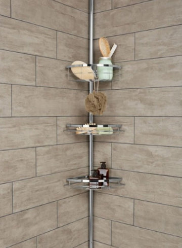 Met dit telescopisch doucherek houd je je douche- en badartikelen georganiseerd. Je kan het doucherek zonder boren plaatsen en is makkelijk te instaleren met behulp van de bijbehorende beschrijving. De drie manden hebben de vorm van een driehoek, waardoor het doucherek goed in de hoek past van zowel grotere als kleinere douchecabines.