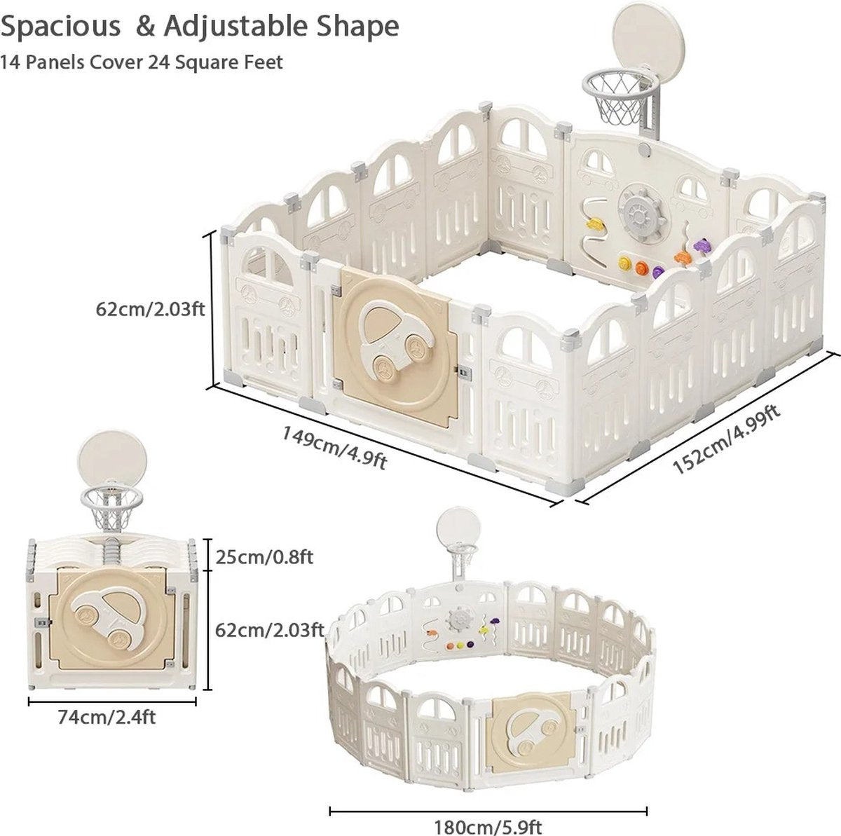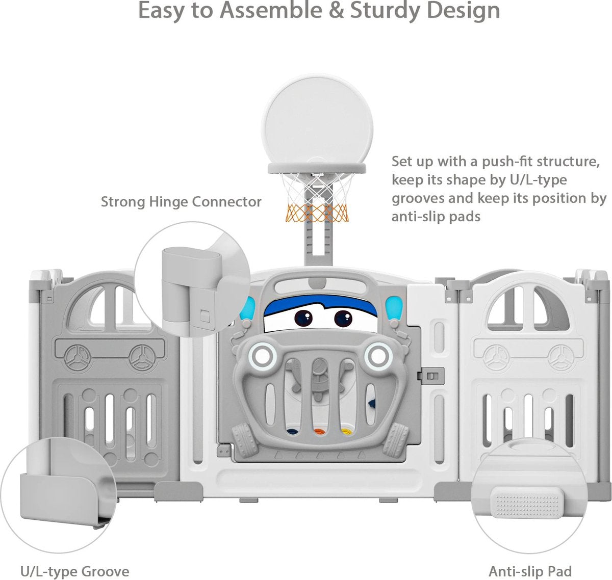 Maak elke speelmoment onvergetelijk met de Ubravoo opvouwbare babybox. Deze ruime 14-paneel speelpen is perfect voor peuters en baby's en wordt geleverd met een in hoogte verstelbare basketbalring en een set van 50 gekleurde pitballen. Creëer een veilige, leuke en educatieve omgeving waarin je kleintje zich vrij kan vermaken en ontdekken.