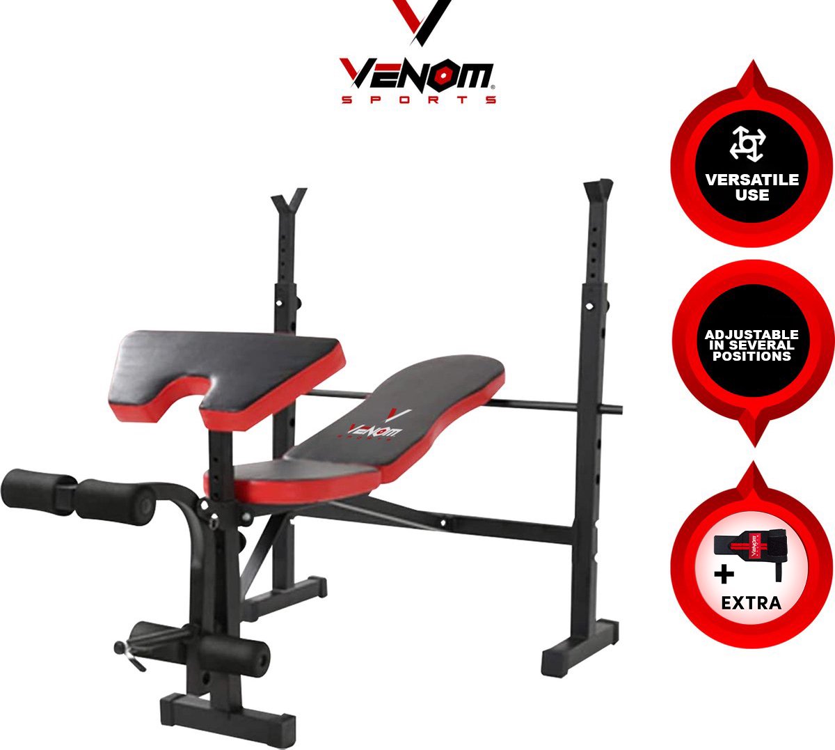 Met de halterbank van Venom Sports train je gemakkelijk meerdere spieren van je lichaam!