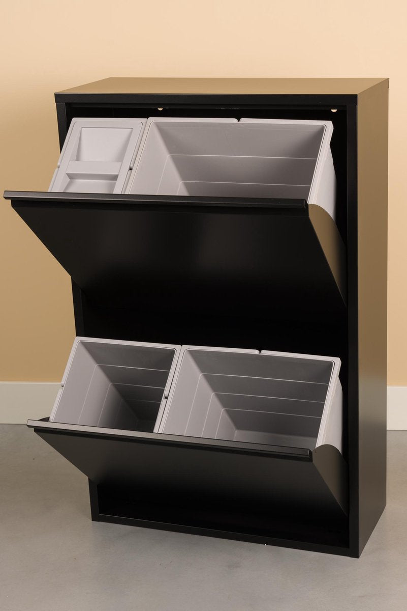 Afvalbak met vier verschillende maten binnenemmers zwart